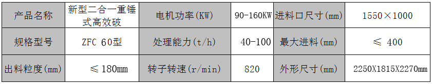 【進(jìn)料粒度】: ≤400mm 【生產(chǎn)能力】:40-100t/h