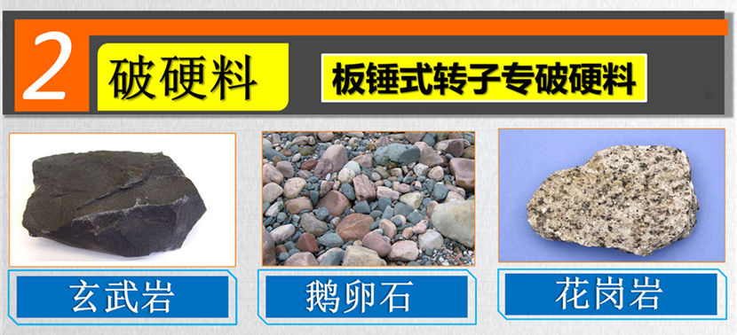 河卵石、花崗巖、玄武巖、鐵礦石、石灰石、石英石、輝綠巖、建筑垃圾、鐵礦、金礦等