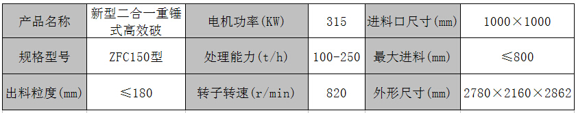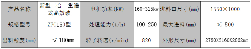【進(jìn)料粒度】: ≤800mm 【生產(chǎn)能力】:150-250t/h