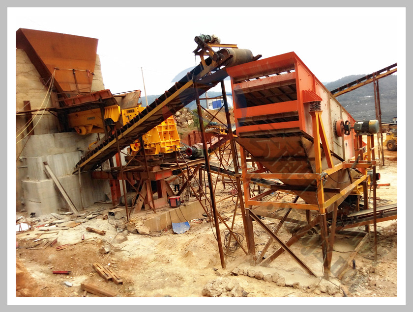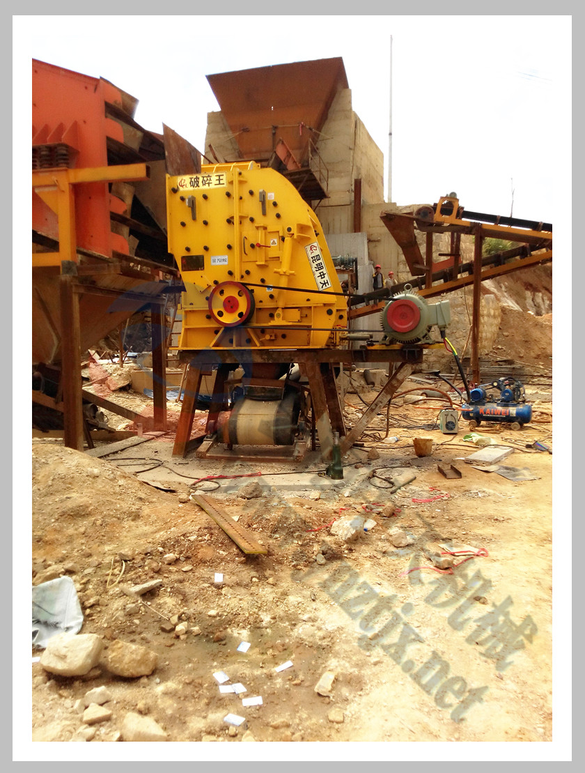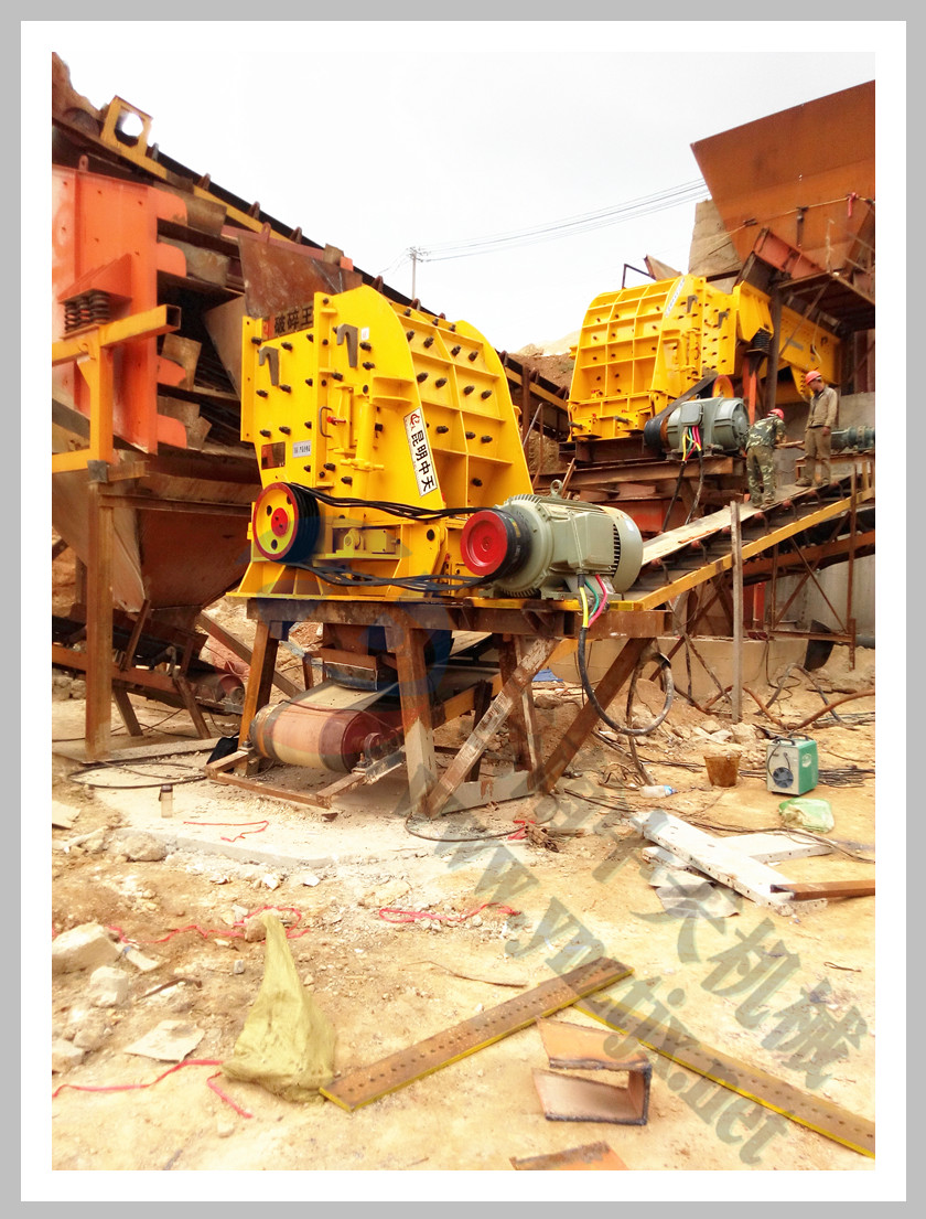 云南昆明李總?cè)_二合一反擊破制石英砂現(xiàn)場,外加兩臺振動篩,日產(chǎn)石英砂3000噸 |