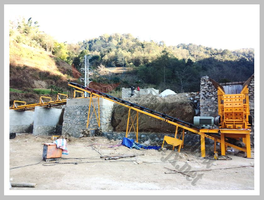 云南保山龍陵陳總一條皮帶輸送鏈接二合一破碎機,機昆明安寧施總有著多年石料場生產(chǎn)經(jīng)驗,針對物料磨損含鎂的情況,經(jīng)過多個破碎機生產(chǎn)廠家的考察,最終確定選擇云南中天最先進的二合一高轉(zhuǎn)速反擊式破碎機。該套生產(chǎn)線根據(jù)地形情況,選擇了二合一配振動篩的設計方案,使用下來,磨損情況大大降低,預計每小時生產(chǎn)80噸,實際用下來接近每小時120噸,遠遠超出來客戶的預想! |