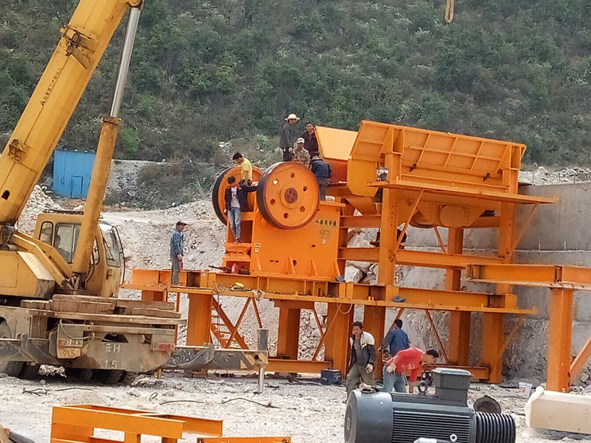 選用了帶鋼架結(jié)構(gòu)的安裝方式,拼接起來就可以使用,給料機(jī)鄂破也安裝完成了